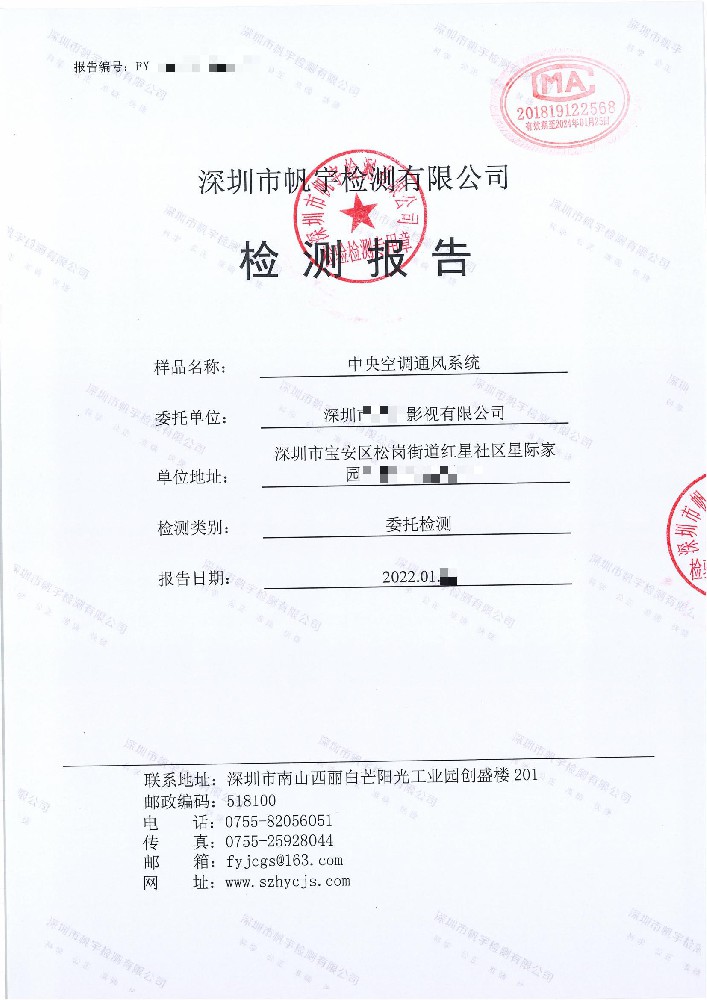 深圳电影院中央空调通风系统卫生检测报告